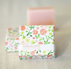 石鹸を花に近づけると、ふわっと春を感じさせる華やかで軽やかな香りが広がり ます。