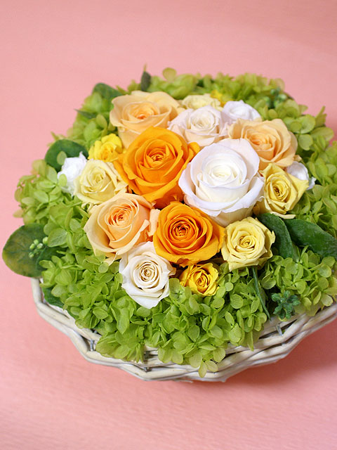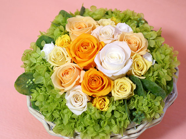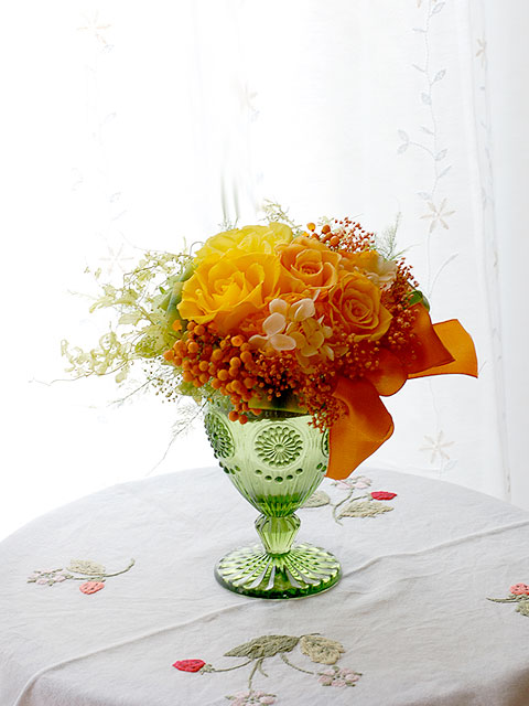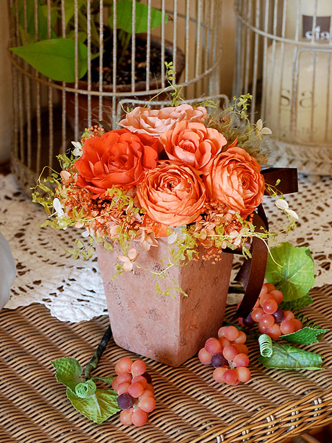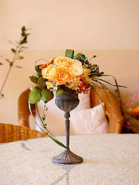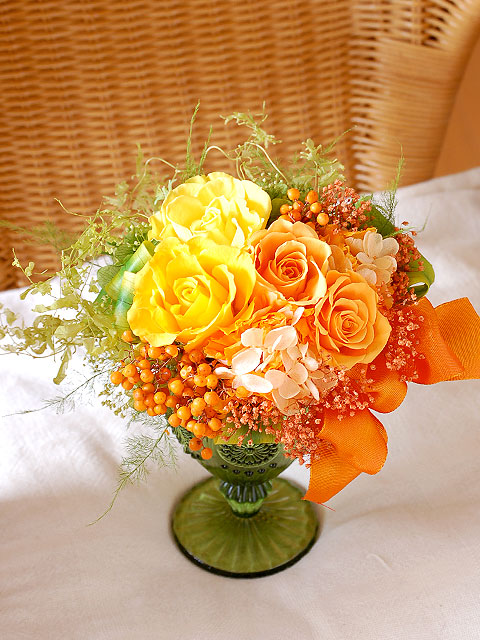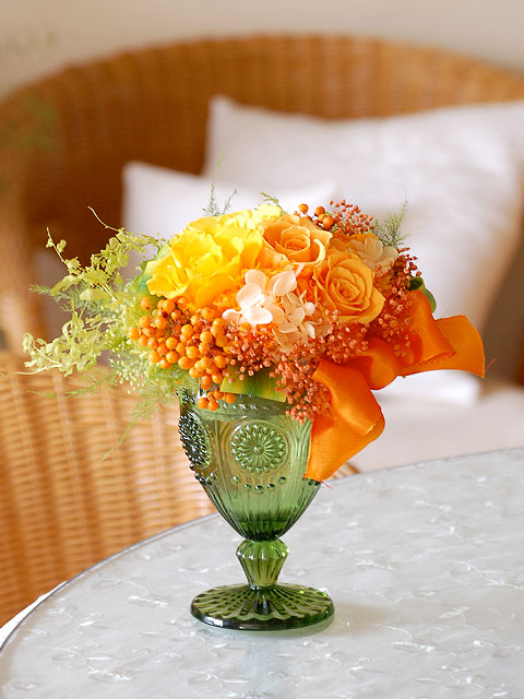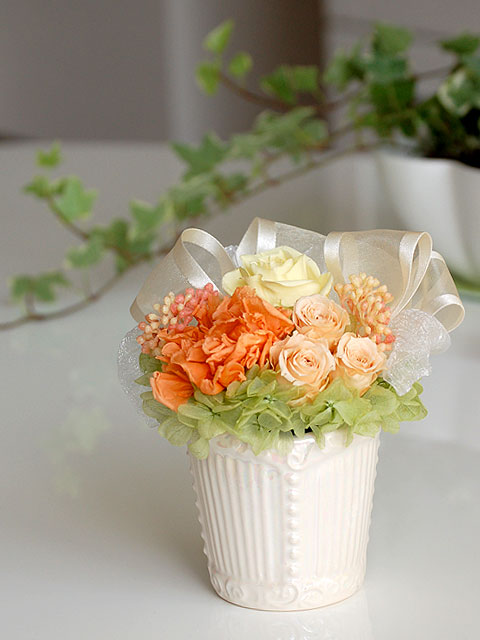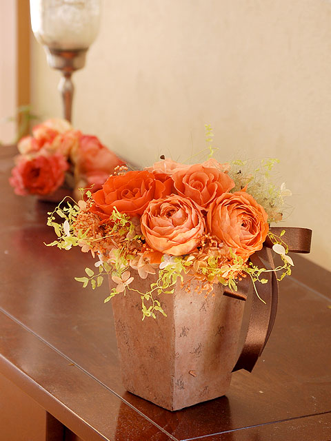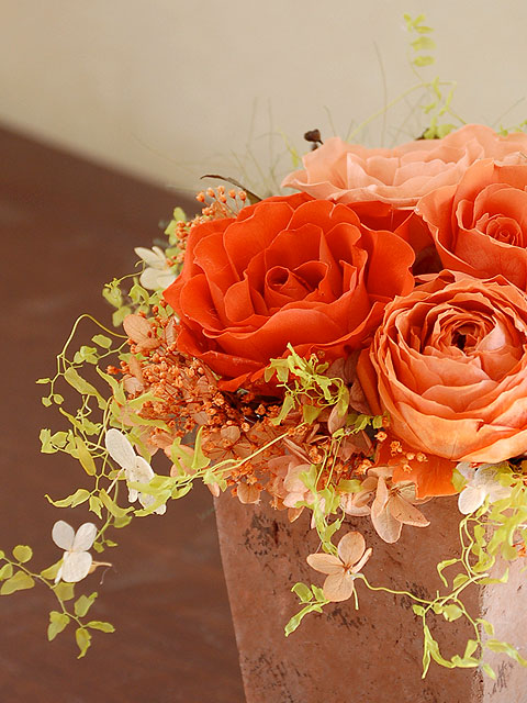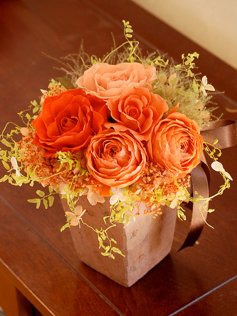 オレンジ系で選ぶプリザーブドフラワー、フラワーアレンジメント