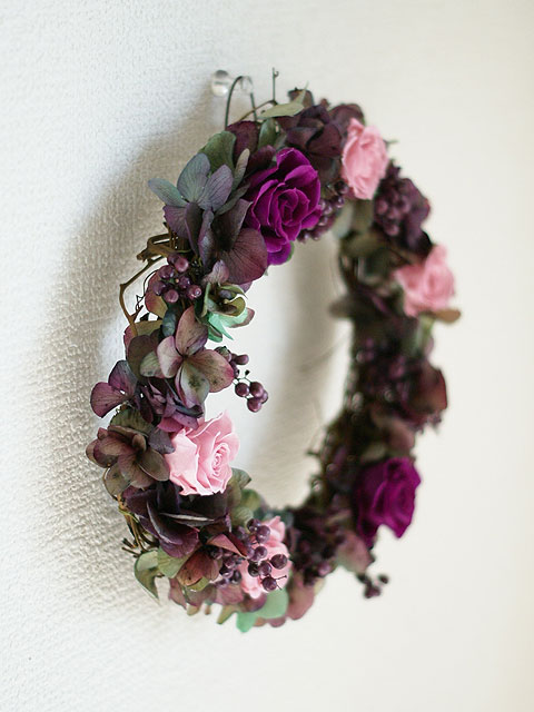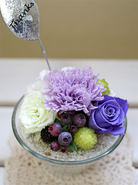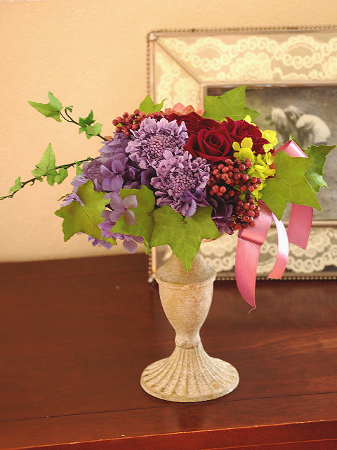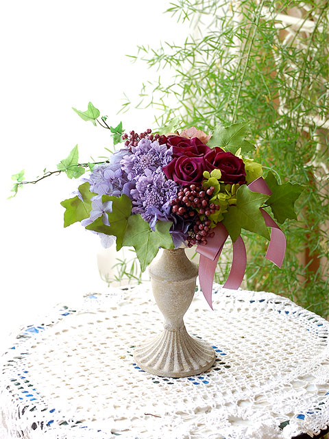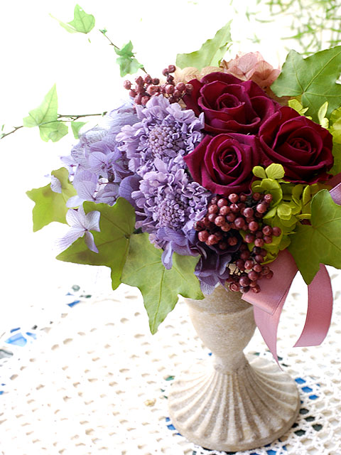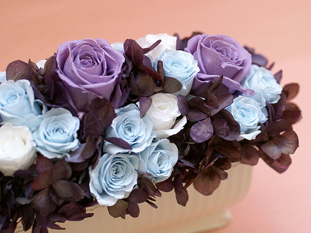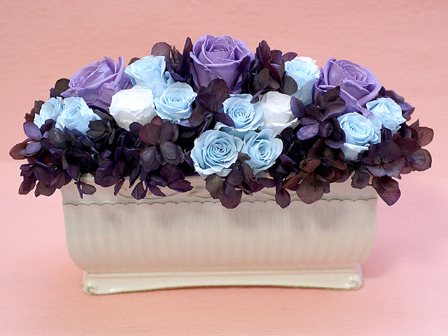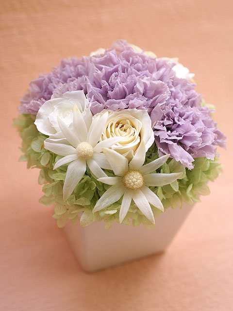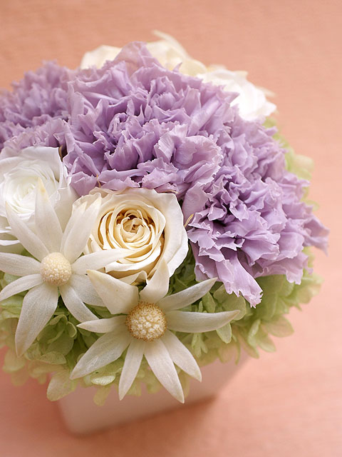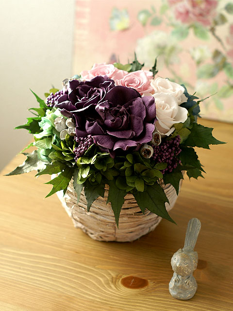 パープル系で選ぶプリザーブドフラワー、フラワーアレンジメント