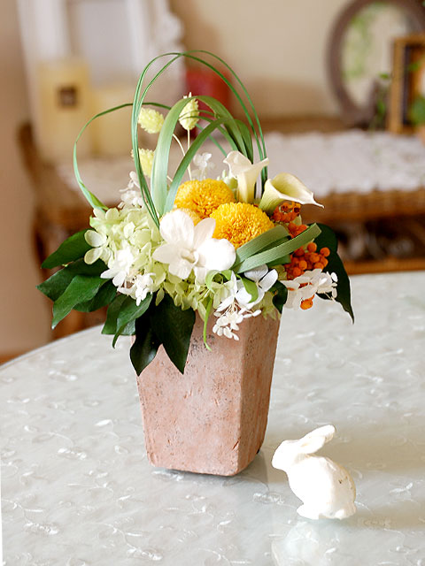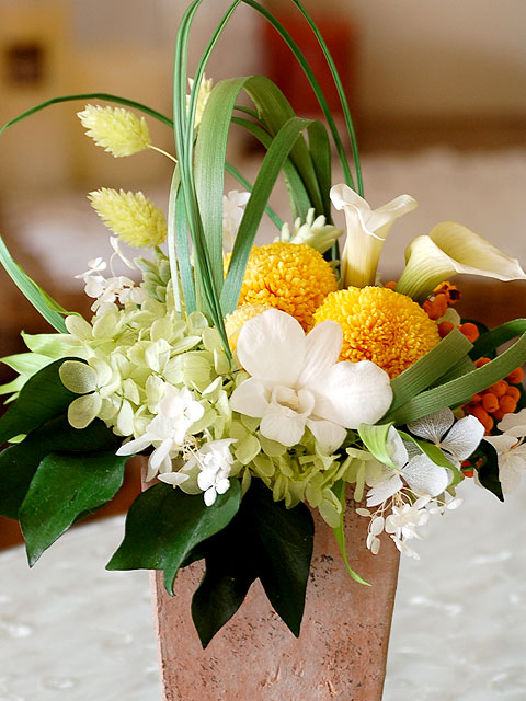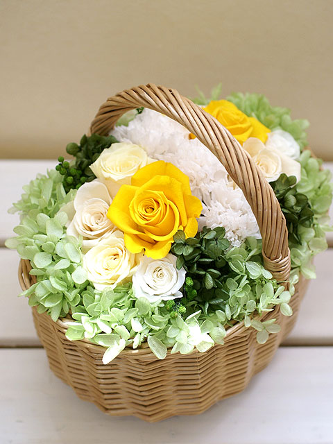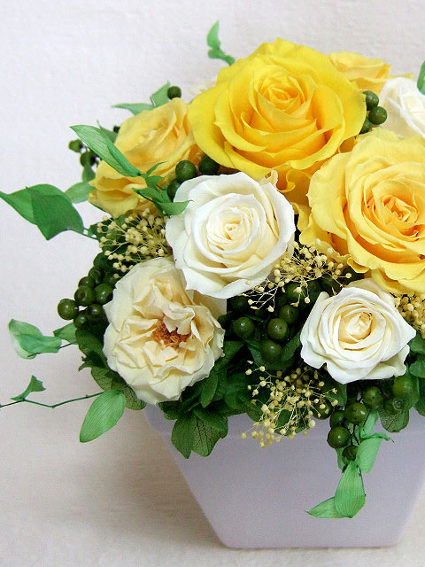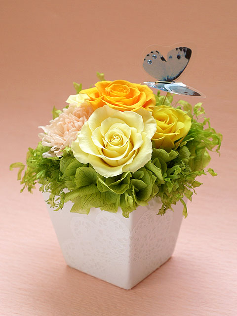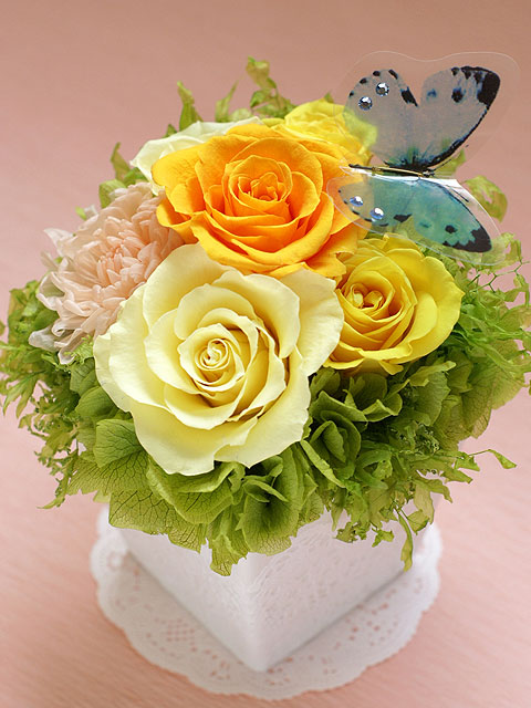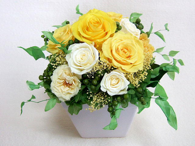 イエロー系で選ぶプリザーブドフラワー、フラワーアレンジメント